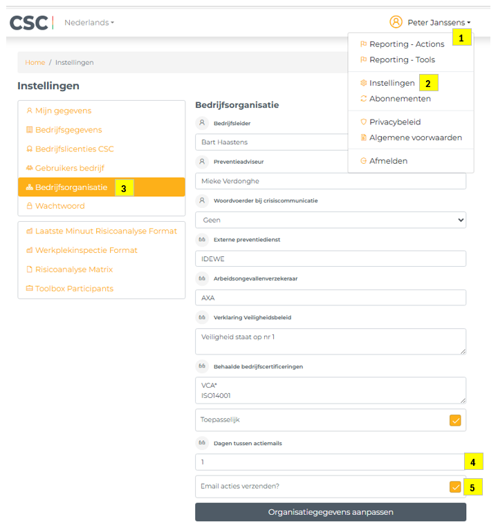 Als administrator heb je de mogelijkheid om de actielijst mail die jullie collega's krijgen, te wijzigen op de volgende 2 punten: