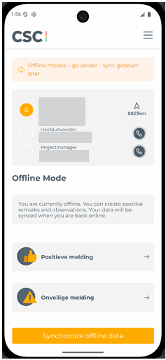 CSC biedt de mogelijkheid om bepaalde acties offline uit te voeren. Dit is handig op locaties waar de internetverbinding beperkt of onbetrouwbaar is, zoals op een werf. Belangrijk, je dient de actie te starten met een 4/5G of wifi verbinding.